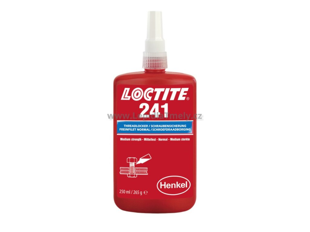 Loctite 241 je určen pro zajišťování a utěsňování závitových spojů střední pevností, které mají být demontovatelné běžným ručním nářadím. Vytvrzuje bez přístupu vzduchu ve spáře mezi lepenými kovovými povrchy a zabraňuje uvolnění či prosakování spoje, které je způsobené vibracemi a rázy. Loctite 241 je zvláště vhodný pro méně aktivní povrchy, jako je nerezová ocel nebo pokovené povrchy tam, kde je při opravách nutná demontáž ručním nářadím.