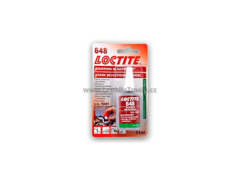 Loctite 648 je určen pro spojování lícovaných válcových součástí kde je požadována tepelná odolnost. Produkt vytvrzuje bez přístupu vzduchu ve spáře mezi lepenými kovovými povrchy a zabraňuje uvolnění či prosakování spoje, které je způsobené vibracemi a rázy. Typické aplikace Loctite 648 zahrnují upevňování ozubených a řetězových kol na hřídele převodových skříní a také upevňování rotorů na hřídele elektrických motorů nebo vymezení vůli ložiska v díře či na hřídeli.
